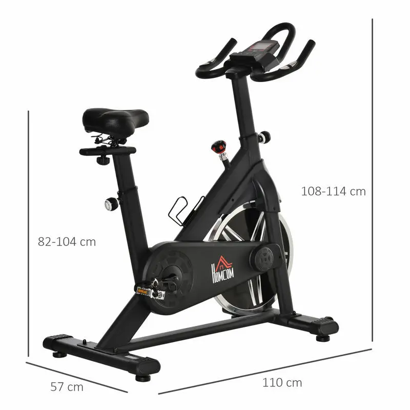 Compra en Decathlon Bicicleta estática con volante 10 kg HOMCOM 110x57x114 cm negro Con un volante de inercia silencioso de 10 kg, y marco de acero, esta bicicleta estática de HOMCOM es ideal para la práctica de ejercicios de intensidad.