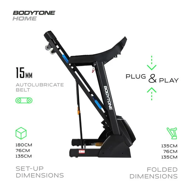 BODYTONE Cinta De Correr Plegable, 18 Km/h, MP3 Altavoces Y Pantalla LCD DT18