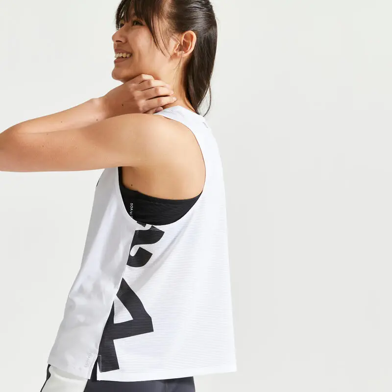 Camiseta Fitness Sin Mangas Tirantes Holgada Mujer Domyos Blanco