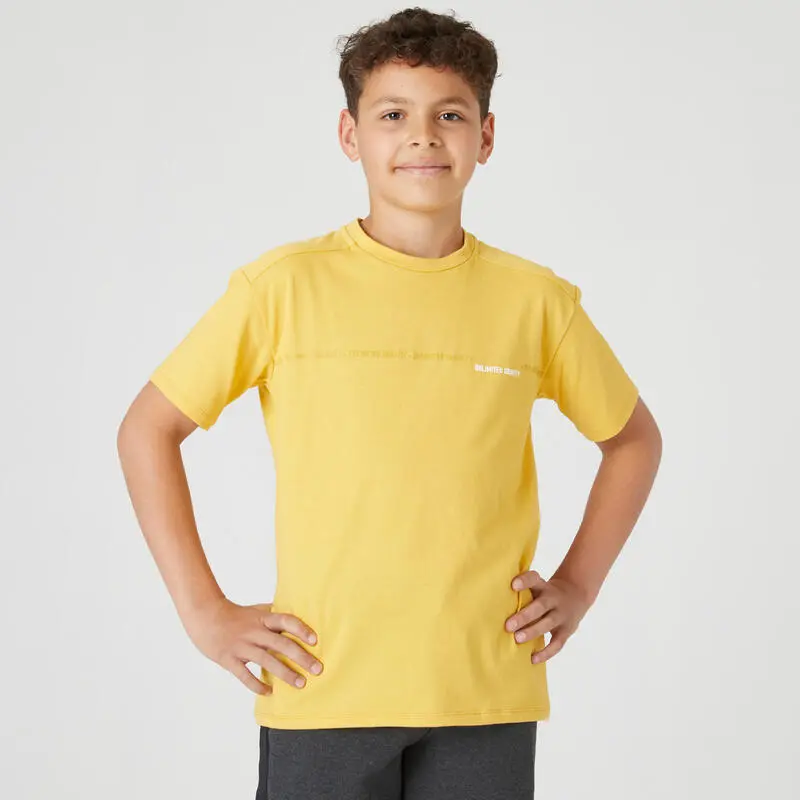Camiseta Gimnasia Manga Corta Algodón Transpirable Niños Domyos 500 Amarillo