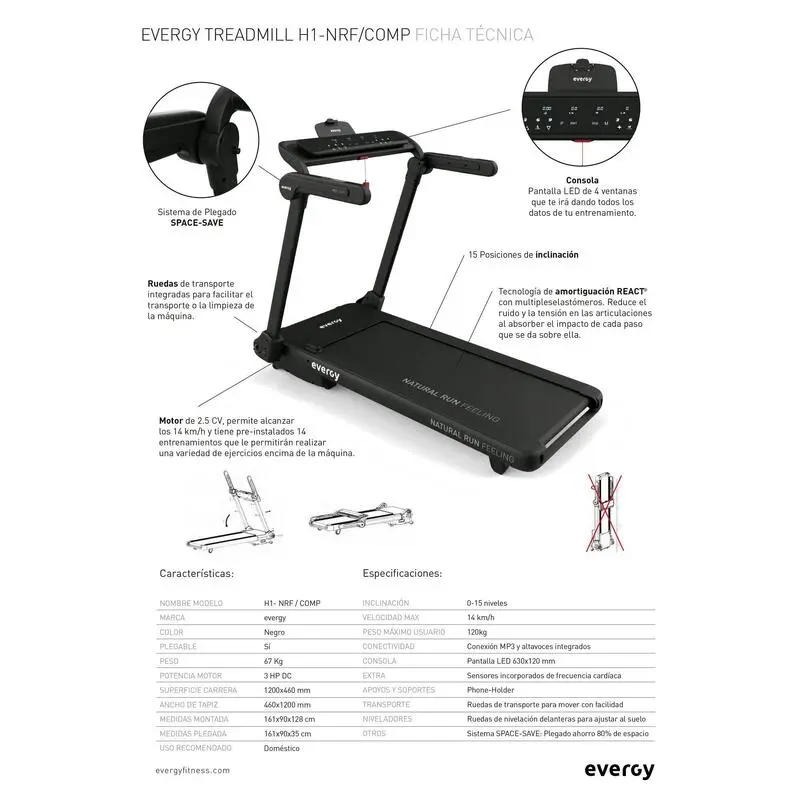 CINTA DE CORRER EVERGY PLEGABLE / INCLINABLE H1