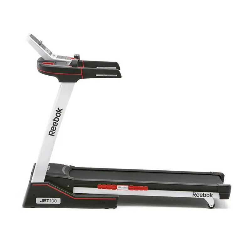 Compra en Decathlon Cinta de Correr Reebok Jet 100 Series Velocidad máxima de 16 km/h. 12 niveles de inclinación electrónica. Motor continuo 2.0HP. Superficie de carrera de 43 x 130 cm.
