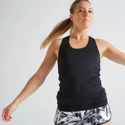 Domyos Camiseta Fitness Cardio My Top Negro Sin Mangas Espalda Natación Cuello Redondo
