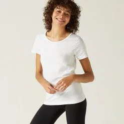 Domyos Camiseta Pilates Manga Corta Básica 100% Algodón Mujer Nyamba Blanco
