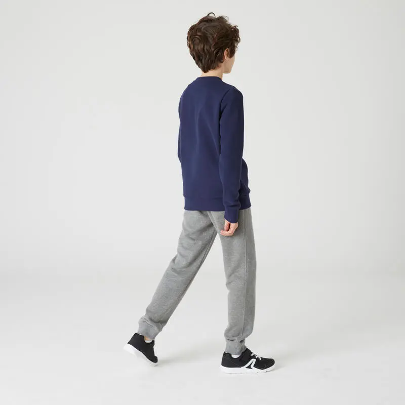 Compra en Decathlon Sudadera Niños Unisex Azul Marino Cuello Redondo Cálida Sudadera cuello redondo, sencilla y práctica, de felpa, para acompañar a los niños en sus actividades diarias y en el colegio.