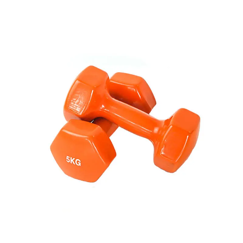 Compra en Decathlon Par De Mancuernas De Colores 5kg Viok Sport Mancuernas de hierro recubierto en vinilo diseñada para tus entrenos en casa o para gimnasio profesional, con uso muy extendido en clases colectivas fitness.