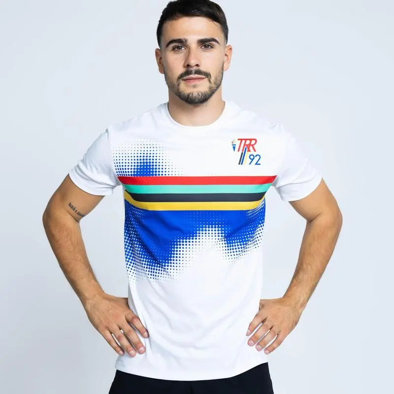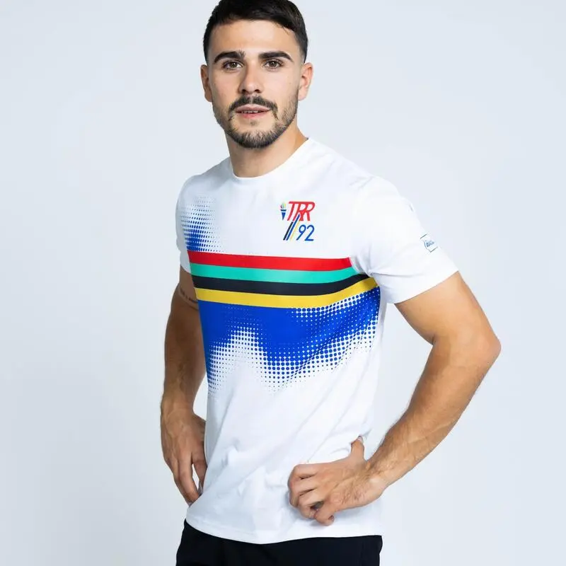 Compra en Decathlon Camiseta de manga corta de hilo SEAQUAL Barcelona 92 de hombre TRR Blanca La camiseta de Running Barcelona 92, es 100% sostenible, fabricada con hilo SEAQUAL, y cómoda en todas las condiciones y gracias a su tejido mejorando la transpirabilidad, la frescura y el confort.