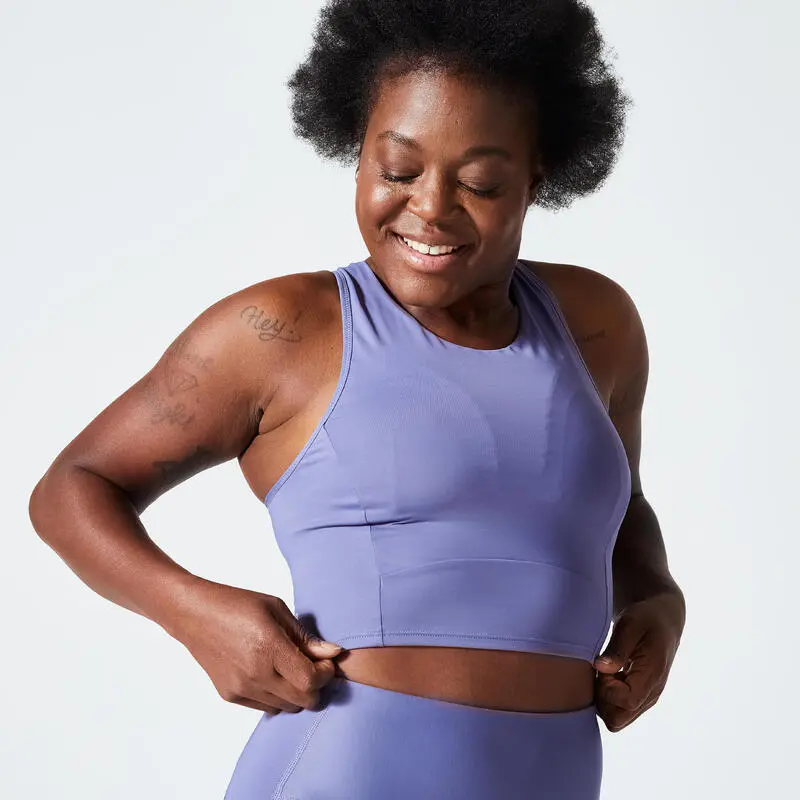 Compra en Decathlon Top gimnasio sujección moderada Mujer Domyos 540 Te aconsejamos: elegir una talla más a tu talla habitual ya que queda ajustado. Este sujetador tiene un tipo de sujeción media reduce un 36% el impacto.