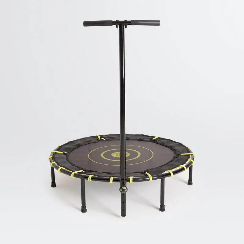 Compra en Decathlon Trampolín cama elástica Domyos FIT TRAMPO 500 81 CM hasta 110 KG Nuestros equipos han diseñado el trampolín 500 con barra frontal desmontable para que puedas superarte con un trampolín compacto que se adapta a todas las prácticas.